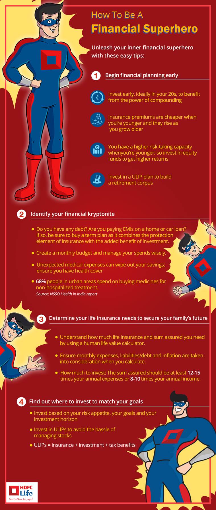 Investing sensibly can fuel your finances and enable you to become a ‘financial superhero’ while defeating super villains such as debts and loans. Every small decision you take every day can make or break your finances. Whether it is spending more than you can afford, taking on too much financial risk, lack of awareness about the benefits of life insurance, or simply underestimating the destructive power of debt, we all are guilty of making financial mistakes that cost us gravely.