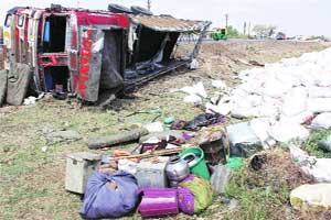 Sanand police said 17 of them who survived had been admitted to V S hospital in Ahmedabad. They said most of the passengers were buried in the 300 sacks of salt (weighing 50 kg each) which fell on them.
