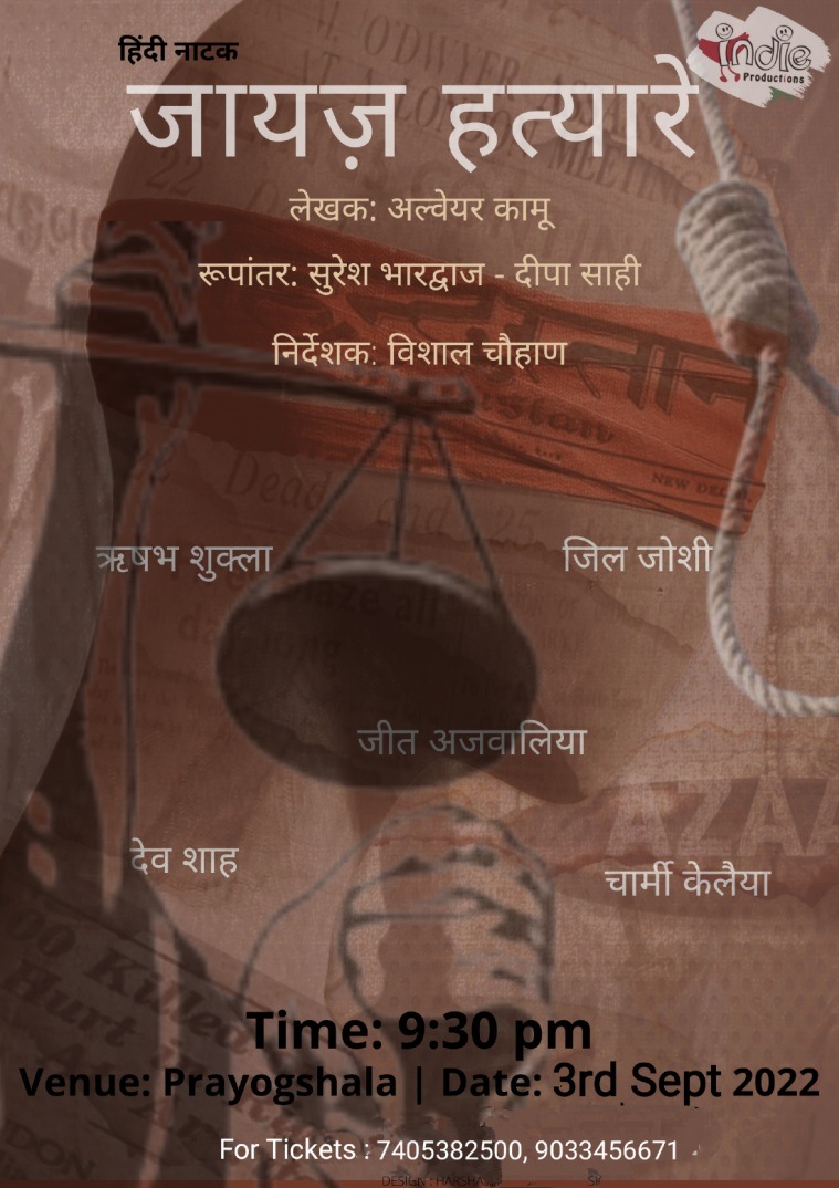 About the event: A Hindi adaptation of Albert Camus’ French play “The Just Assassins”, “Jaayaz Hatyare” is a philosophical drama by Suresh Bhardwaj and Deepa Sahi. Directed by Vishal Chauhan, it depicts the time when India was under British rule. The story is about five freedom fighters who kill a governor to pave the way for independence. The play raises the question if one would would like to live in a country whose history of independence is written by an assassin.