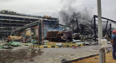At least five workers died and around 50 suffered severe burn injuries after a mysterious explosion took place in Yashashvi Rasayan Private Ltd chemical factory at Dahej in Bharuch Wednesday, as thick smoke billowed out of the plant. The injured have been admitted in Bharuch civil hospital and two other private hospitals. The explosion was so loud that it was heard up to a three kilometre radius. As a precautionary measure, the district administration officials has shifted around 4,800 people staying in two neighbouring villages. Fire tenders have been rushed to the spot to control the blaze.
