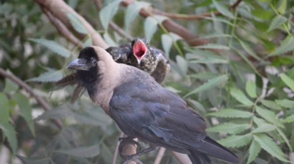 In the Ambawadi area of Ahmedabad, there are many tall neem trees. By chance, I witnessed the behaviour of a crow abandoning the young ones of the koel and recorded it on my camera. The babies were making sharp sounds, like ‘chrrr chrrr chrrr….’, begging for food with their beaks open when they saw the crow coming towards them. But the crow neglected them and refused to feed them.