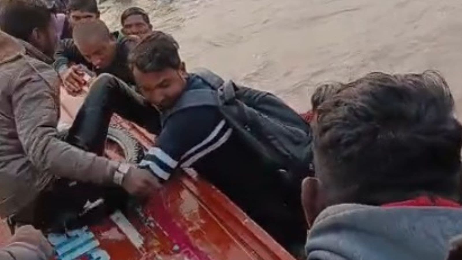 While five persons were injured due to the fall, since the boat overturned close to the riverbank, all persons were rescued in the nick of time.