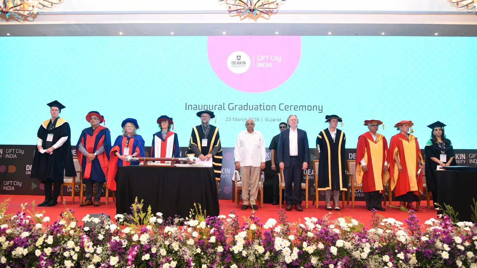 The convocation ceremony of the first graduate batch of Deakin University at GIFT City campus in Gandhinagar was held on Monday. As many as 46 students were awarded degrees on the occasion. Located in GIFT City, the campus offers postgraduate programmes in Business Analytics and Cyber Security.