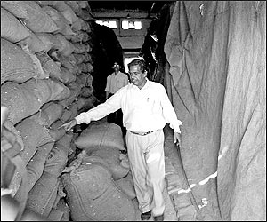 Residents of the Priyalaxmi Mill compound area made a hue and cry inside the Food Corporation of India (FCI) godown in the same locality,complaining about an insect menace rooted in the stuffed food grains there. Residents of societies such as Ashapuri,Saraswati Nagar,Amarnagar,Shrinagar and Rajiv Nagar alleged that insects nesting in the godown were troubling them for quite some time. Dilip Parmar,the president of one such society,said: We have been complaining about this problem for long,but FCI officials have not taken any step. The insects start flying in the evening and fall in the food; we have to put cotton buds in our childrens ears. These insects also get into the eye of commuters causing a burning sensation. He added: Although it can be clearly seen that the insects fly out of this godown,the officials deny it. If there are insects in the food grains,it also means that they are distributing the same to the public,which is. Meanwhile,FCI officials maintained that the insects are not flying out of the godown. P R Shastry,Warehouse Managar,FCI,Vadodara,told The Indian Express: These are false allegations by the locals. The insects are actually coming from the drainage water,which has accumulated near the slums. There is no scope of insects infesting our grain stock,as senior officials inspect the same every month. There are some locals who want to create problems for us,and they have made an issue of it. According to Shastry,14,000 tonnes of wheat are stored in the godown. But some FCI officials,who took locals along with media persons inside the godown,maintained that the insects are coming from the grains only because a large quantity of wheat is not covered with plastic sheets. There is a staff shortage because of which certain preventive measures are not being taken regularly, the official said.