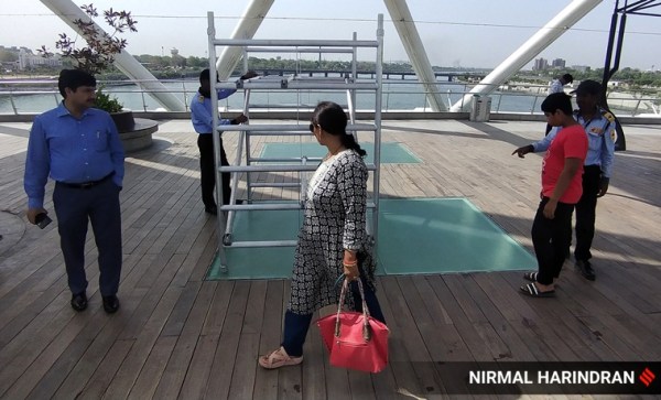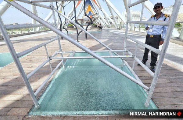 “Experts too have concluded that at times the glass breaks. But the four layers of glass are toughened and bonded with lamination, which makes it strong enough and not risky. To test the strength, eleven people stood on it today morning,” Jagdish Patel, chief general manager at the Sabarmati Riverfront Development Corporation Limited, told The Indian Express.