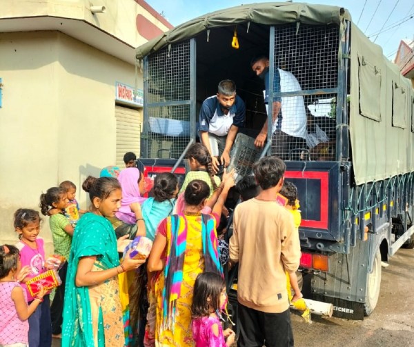Relief materials being distributed among people in Jamnagar. (Photo: Ministry of Defence)
