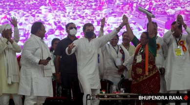 He added that during the UPA government, the wealth of the people — water, forests and lands — were secured. Gandhi said, “The UPA government tried its best to help benefits of water, forests and land reach all Indians — Dalits, tribals and others. We brought the Panchayats (Extension to Scheduled Areas) Act (Pesa) law to be able to return your land to you. MGNREGA gave guaranteed work of 100 days. The whole country implemented it and crores of people were benefitted. We brought land laws for fair acquisition. We changed the British law. No one can take your land without asking you. With four times compensation than the market awarded, your land will be acquired through a process. We did this. This is your land, not of the Gujarat government or the Chief Minister.”
