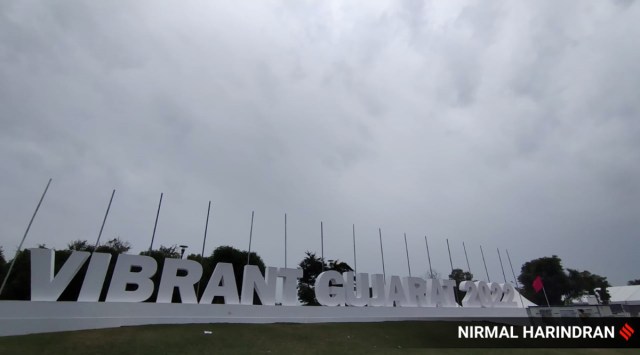At the venue of Vibrant Gujarat summit, Gandhinagar. (Express photo by Nirmal Harindran)