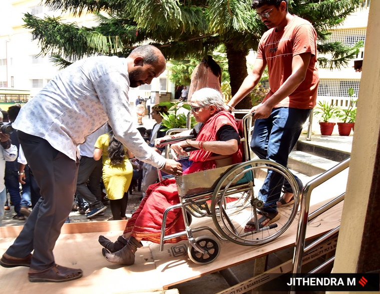 Elderly voters in polling stations of Bangalore excercise their right to universal suffrage in Karnataka assembly elections today.