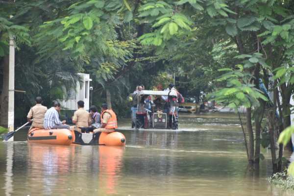 People being evacuated from the inundated Sunny Brooks Villa in Sarjapura Road.
