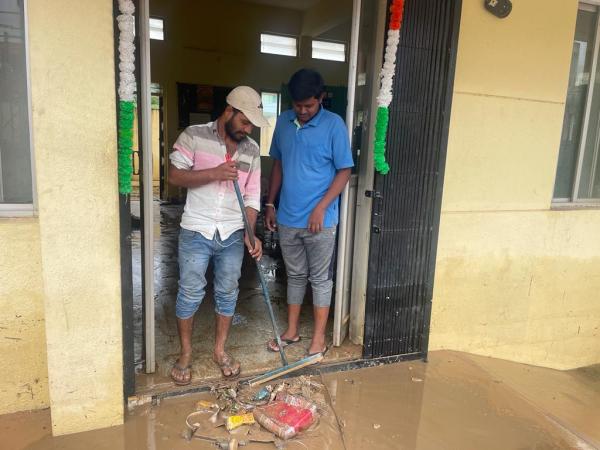 Workers clean the BESCOM Kadubeesanahalli 66/11 KV sub-station that was inundated due to heavy downpour.