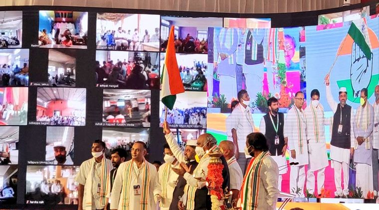 The oath-taking ceremony began with paying homage to the 20 Indian soldiers who were killed in an India-China faceoff at Galwan Valley last month in Ladakh. After Dinesh Gundu Rao gave the Congress’s party flag, in a symbolic gesture of handing over the charge, Shivakumar along with party workers who had joined digitally read out the Preamble of the Constitution.