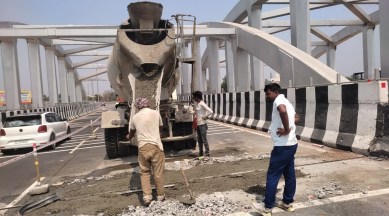 Project director B T Sridhar told The Indian Express that some steel plates, not the road, had been damaged, because of vehicle density. “It is a curve and the vehicle speed is restricted to 65km per hour. As the steel plates were damaged, they were being repaired,” he said.