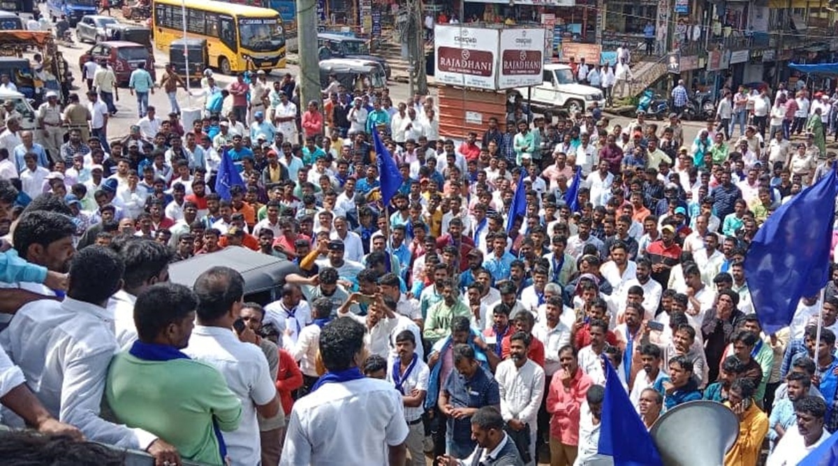 Massive protests broke out in Sakleshpur under Hassan district in Karnataka Monday, after a few Bajrang Dal activists allegedly attacked a Dalit man while the latter was transporting his cow.