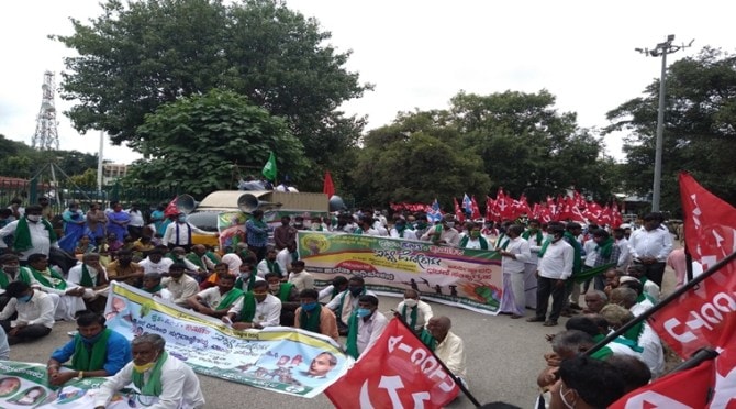Thousands of protesters from various organisations protested against amendments to THe Land Reforms Act, Agricultural Produce Marketing Committee (APMC) Act, Electricity Act and various labour laws by both Centre and State governments.