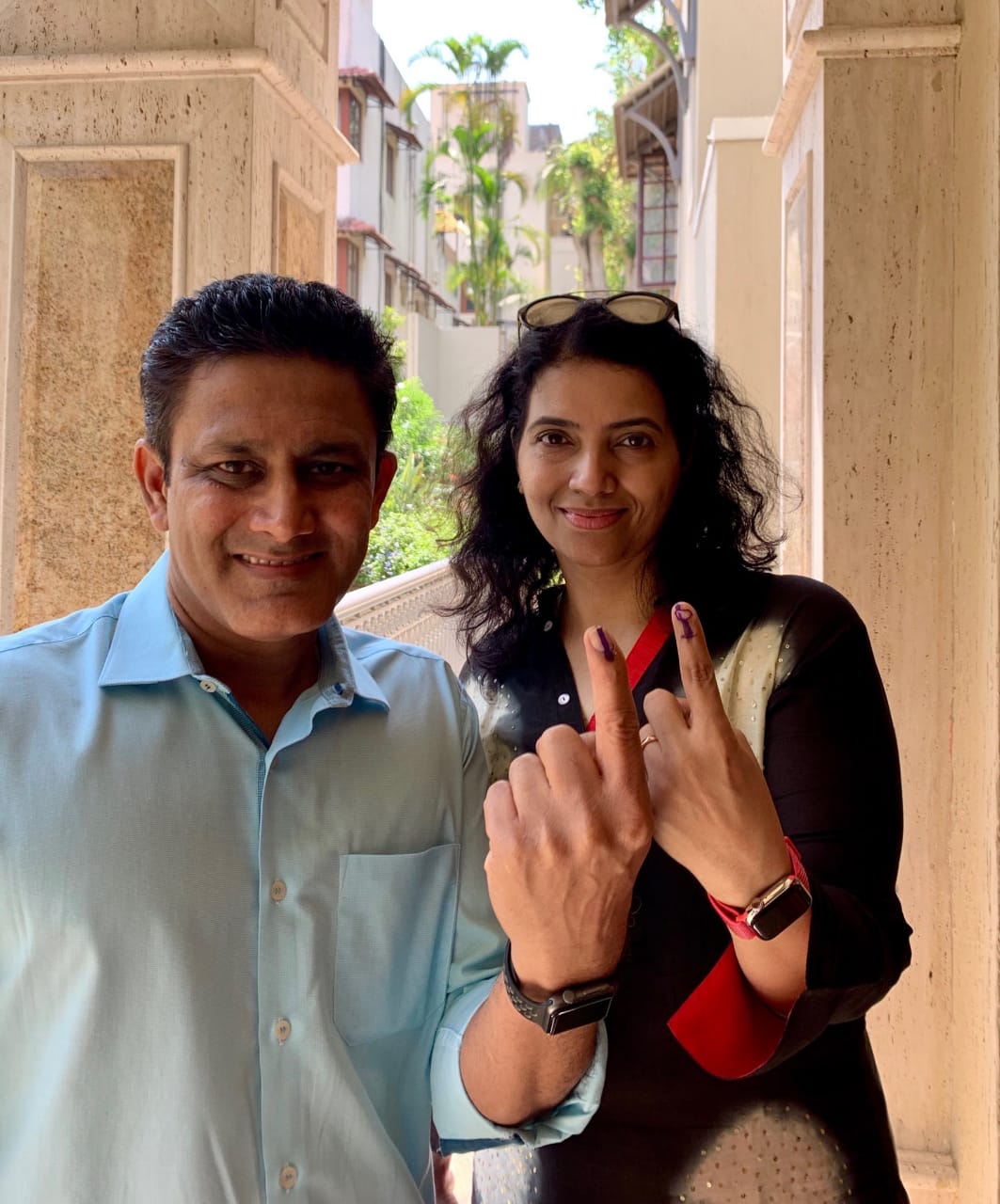 Former Indian cricketer Anil Kumble casts his vote in South Bangalore.