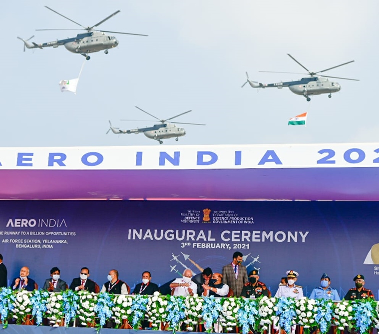 The event was inaugurated by Union Defence Minister Rajnath Singh. Three Mi-17 helicopters took part in the flypast during the inauguration of Aero India-2021.