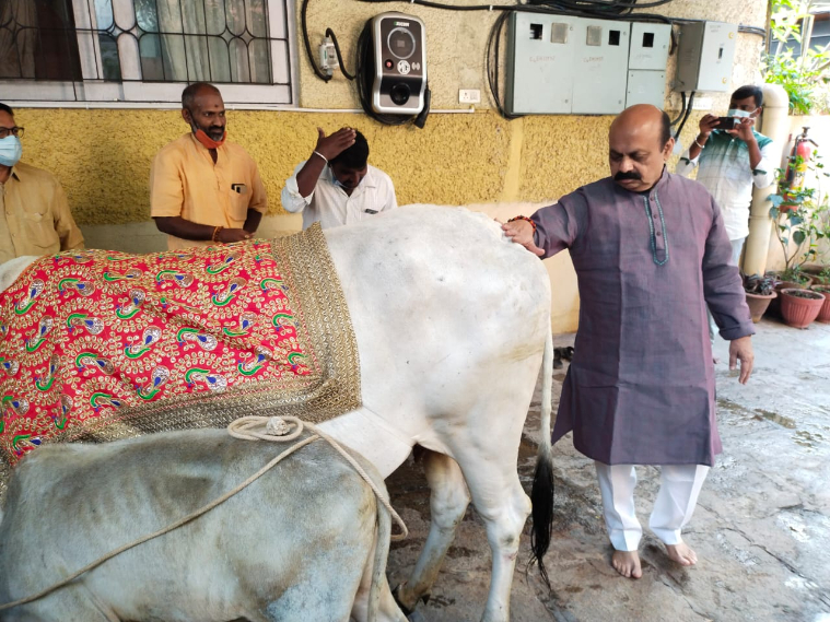 The Chief Minister along with his wife Chennamma performed puja to a cow and calf in the morning. They later took the cow and calf inside their residence and fed them. Bommai showed the way for cow protection through his deeds by adopting 11 cows.