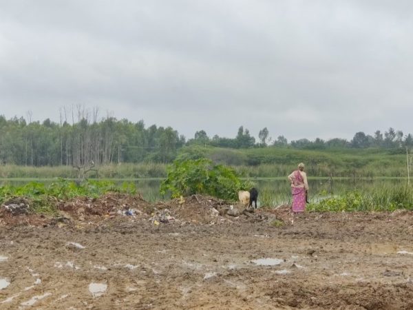 The buffer zone of the lake has been encroached by a government hospital and local shops. The fence around the lake has been broken and garbage is littered on its boundaries.