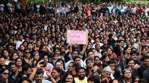 People came out in large numbers to protest against the rape of a six-year-old child at the elite Vibgyor High School in Bangalore. (Source: PTI)