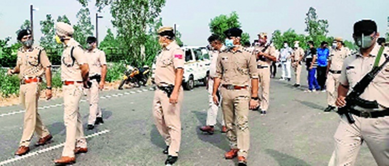 Haryana Police officials at Sonipat’s Butana where two policemen were found murdered Tuesday. Express photo