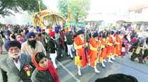 During nagar kirtan in Mohali on Friday. (Source: Express photo by Jasbir Malhi)