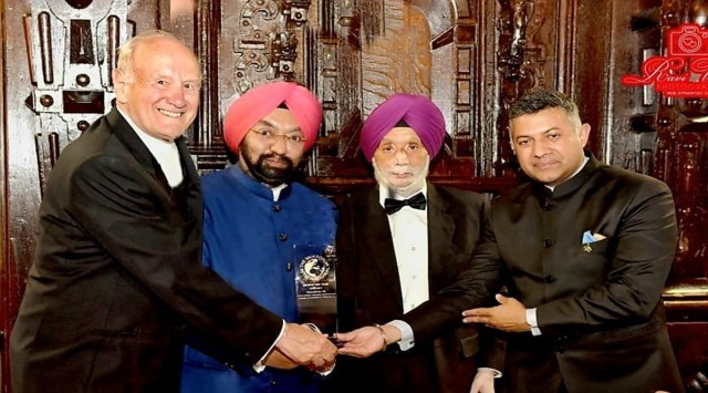 MP Vikramjeet Singh Sahney (second from the left) receiving the ‘Sikh of the Year Award’. (Express photo) Aam Aadmi Party (AAP) Rajya Sabha MP Vikramjit Singh Sahney was Monday conferred the ‘Sikh of the Year Award’ by Indian High Commissioner to UK Vikram Doraiswami. The award was accorded at a ceremony held at the historic Lincoln’s Inn in London. Sahney was awarded for his philanthropic contributions after deliberations about their impact on society and culture.
