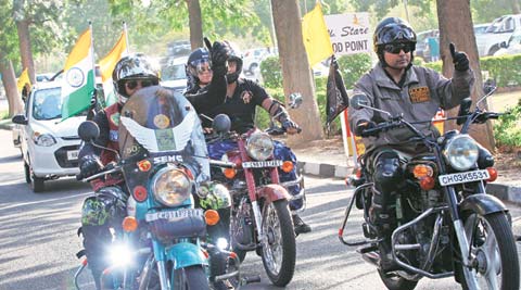 Rajmeet Waraich City-based Soaring Eagles Moto Club (SMEC) on Saturday flagged off a traffic awareness drive which will be carried out en route to Khardung La in Leh Ladakh, the highest motorable road in the world. The drive was flagged off from the Leisure Valley in Sector 10, Chandigarh. A nine-member team comprising three women and six men will be riding through Jammu and Srinagar, Patnitop, Kargil, Sarchu,Pangong Lake and Manali, and create awareness on the importance of following traffic rules, wearing proper safety gear while riding, and ill effects of drunk and rash driving. President of the club, Michael, told Newsline, “During this drive, we will be talking to truck drivers, taxi drivers and general public, and create awareness through pamphlets, flyers and banners. Our motto is ‘ride to live, not to die’.” [related-post] Ira, 47, the eldest member of the group, said, “We will be riding two cars and three Royal Enfield bikes, and will be back after two weeks.” Michael added, “We hope to educate as many people as we can on this trip.”