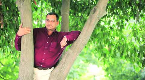 Mountaineer Rajeev Saumitra at a hotel in the city. (Express photo by Jaipal Singh)