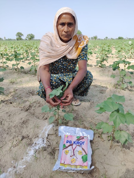 ‘Knot of PBW Protection’, this technique is part of project ‘Bandhan’ of the South Asia Biotechnology Centre (SABC), Jodhpur, in collaboration with Ambuja Cement Foundation (ACF), supported by PI Foundation under the technical supervision of ICAR-CICR (Indian Council of Agricultural Research – Central Institute of Cotton Research). The project has been launched in northern states where 469 acres in seven clusters each of over 65 acres is spread in seven districts of three states, including Bathinda, Mansa and Fazilka in Punjab; Sirsa and Fatehabad in Haryana; and Ganganagar and Hanumangarh in Rajasthan. The PBW had wreaked havoc last year on cotton crop in Bhatinda and Mansa in Punjab; Sirsa, Fatehabad and Hisar in Haryana.