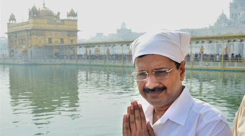 Delhi Chief Minister Arvind Kejriwal pays obeisance at Golden Temple for the Peace of Punjab before to visit Kotakpura, in Amritsar on Saturday. (PTI Photo)