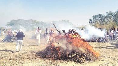 The bodies of all the four victims were cremated at Khatauli village in the presence of hundreds of people on Sunday. All four pyres were lit by Jagdeep Singh, a nephew of Raj Bala.