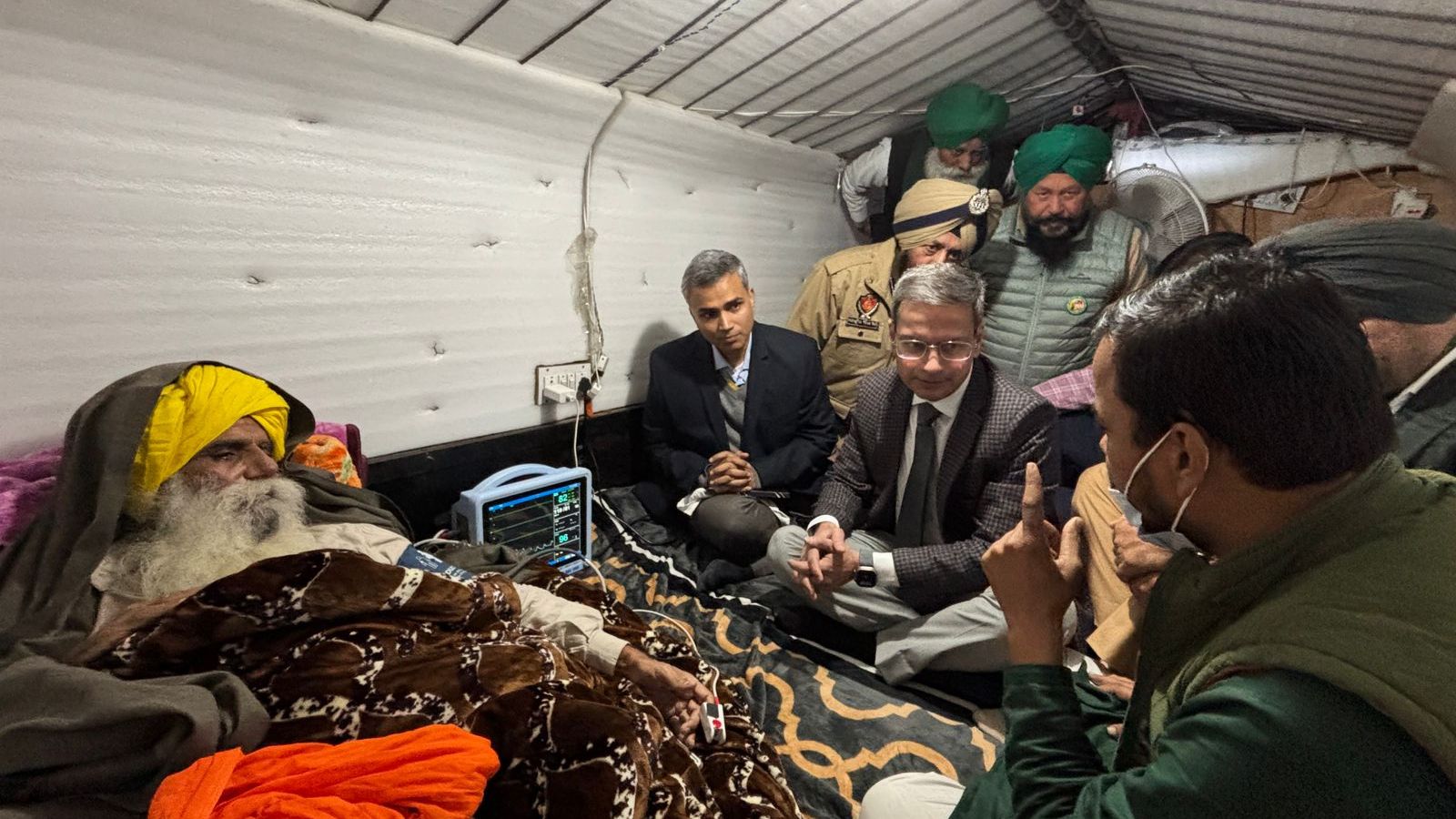 Punjab DGP Gaurav Yadav, along with Mayank Mishra, director of the Ministry of Home Affairs (MHA), met Bharti Kisan Union (Ekta Sidhupur) president Jagjit Singh Dallewal on Sunday afternoon as he entered the 20th day of his hunger strike. Mishra told reporters that he was there to meet Dallewal and hear the farmers’ demands as directed by the Supreme Court of India.