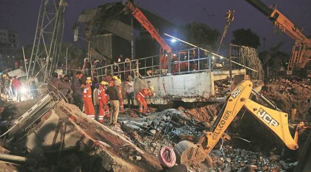 Rescue work in progress at the collapse site on Saturday. (Express photo/Jasbir Malhi)