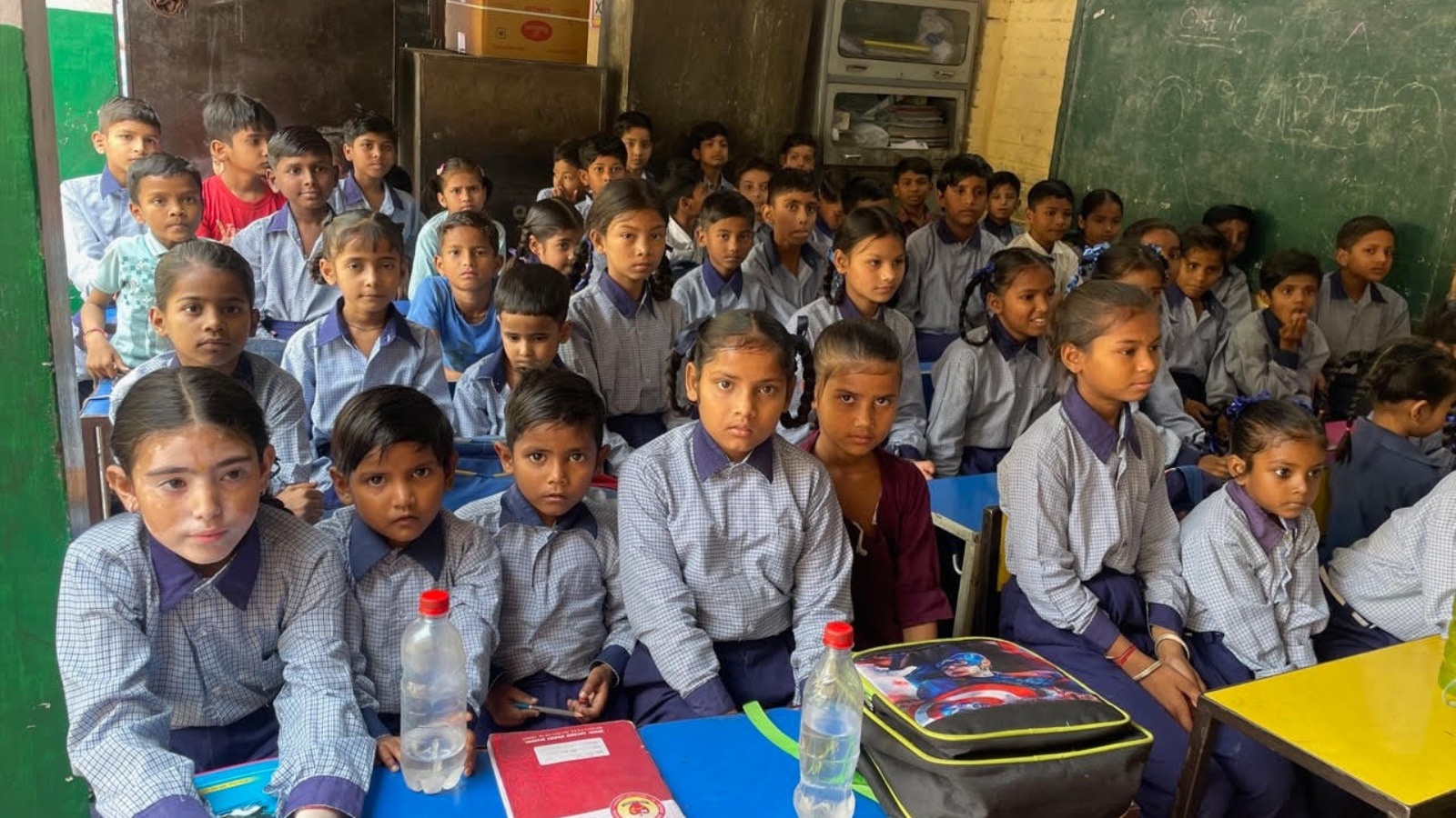 The students from Shahi Mohalla school study at Kundanpuri school in evening shift as they have no other space to sit.
