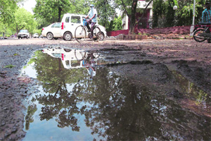 The showers that are being experienced at regular intervals,might be keeping the weather pleasant,but these are showing the chinks in the working of the Municipal Corporation. Slushy conditions prevail in areas where the roads were dug up but not carpeted.
