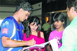 Gulshan Biswas (35),who runs a chemist shop,spent the entire afternoon at Hotel Mountview with his son Naman (10) and nephew Dhananjoy (12). At the end of the day,they were smiling. They went home with Dadas autographs and even got their photographs clicked with him. I want to see Dada score maximum runs in the match and help KKR win, said Gulshan.