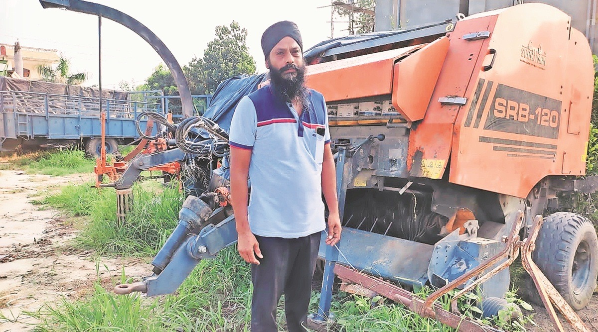 Farmer Kuldeep Singh with stubble management machine (Express Photo)
