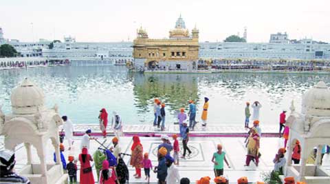 Devotees at the Golden Temple in Amritsar, Saturday. (Express Photo)