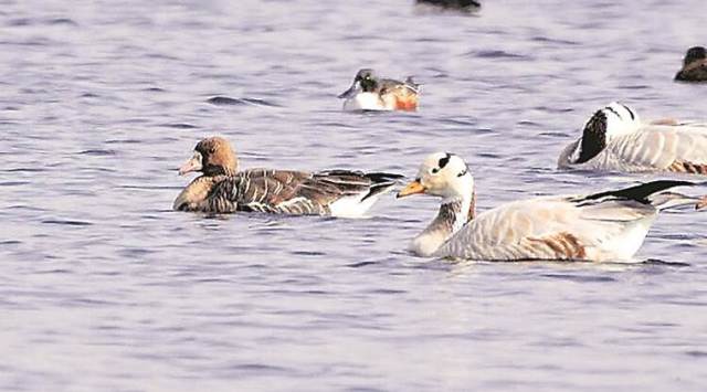 A rare species of goose was spotted and captured on camera by bird watcher Tilak Raj Sharma at the Mote Majra pond in Mohali on January 13. The Greater White-Fronted goose (Anser albifrons) is a species of goose related to the smaller, White-Fronted goose scientifically known as Anser Erythropus. The birdwatcher, Kulbhushan Kanwar, who accompanied Sharma on the day the bird was clicked, said, “It was a pleasure to see and click this rare species. It is so rare because every migratory season, there are only one or two of these birds, which are spotted as they migrate with a similar looking Graylag goose. Luckily on the fateful day, this species, which is hardly spotted in the Tricity area, was found with a gaggle of Bar-Headed geese making it easy to identify.” According to Kanwar, they have been visiting this pond at Mote Majra for the past nine years as it was full of migratory birds. But for the past three years, the village panchayat had given this pond on annual lease to fish contractors, who used to burst crackers to scare away the birds to prevent them from eating fish. But, thanks to the efforts of the Chandigarh Bird Club and members of the Forest Wildlife Board, who took up the matter with the forest department and the pond was cleared. The person, who clicked the photograph, Tilak Raj Sharma, posted the picture on social media, mistaking it for another common species. After that president of the Chandigarh Bird Club, Dr Matinder Sekhon, called. Kanwar informed him that it was actually the Greater White-Fronted goose. Dr Matinder Sekhon and Kulbhushan Kanwar were associated with the Chandigarh and Punjab wildlife departments to conduct bird surveys in Chandigarh and Punjab. Kanwar said, “This endangered and rare species breeds in the Tundra from Nunavut to Siberia across Russia. This is a medium-sized goose with grey-brown body, white forehead, a yellowish bill, legs and feet. The size varies from 66-86 cm with 60 inches of wingspan which seems identical in both the sexes,” said Kanwar. This time around, there are nearly 200 Bar-Headed geese and plenty of Northern shovelers at the pond. Other common species which have been seen in the pond include the Painted stork, Common pochard, Common coots, Brahmini ducks, Purple moor hen, Pintail duck, Cormorants, Blue winged duck and Garganey duck.