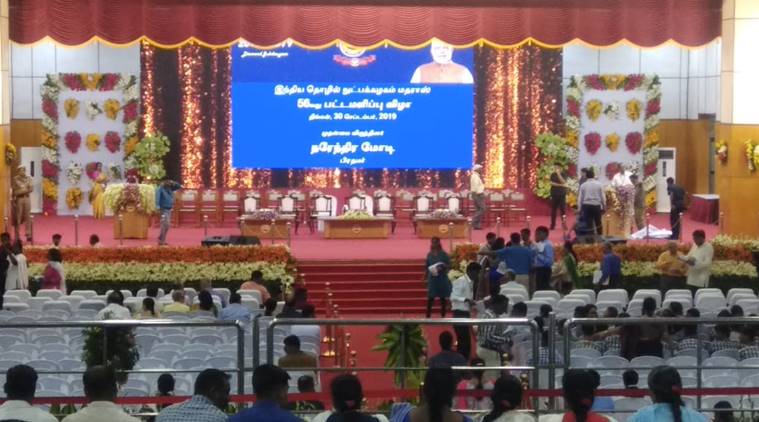 Prime Minister Narendra Modi delivered the convocation speech during the graduation ceremony at Indian Institute of Technology, Madras on Monday. Addressing students, Modi stressed upon the importance of combining technology with healthcare. "Today India is aspiring to become a $5 trillion economy and your aspirations of technology and innovation will fuel this dream", said Modi. Speaking at the Singapore India Hackathon 2019 at IIT-Madras, he praised the country's innovation ecosystem and said it was committed to creating Indian solutions for global applications. Modi, "We are encouraging innovation and incubation for two big reasons- one is we want easy solutions to solve India's problems to make life easier." India was poised to become a USD 5 trillion economy and innovation and startups will play a crucial role in that, he added. The Prime Minister also invited the leaders of ASEAN countries to take part in future editions of the hackathon and urged participants to suggest innovative solutions to combat global warming and climate change. Earlier this morning, Modi praised the Tamil language and said that after his speech in the United Nations last week, the language is now resonating across that country. “When I spoke in Tamil in the US and about the heritage of the Tamil language, it was received well and is now reverberating across the US,” he told BJP cadres at Chennai airport.