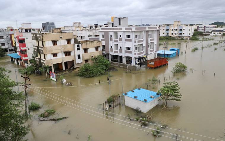 An aerial view of flooded Mudichur area following heavy rain triggered by Cyclone Nivar, in Chennai, Thursday, November 26, 2020. (PTI Photo)