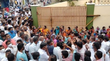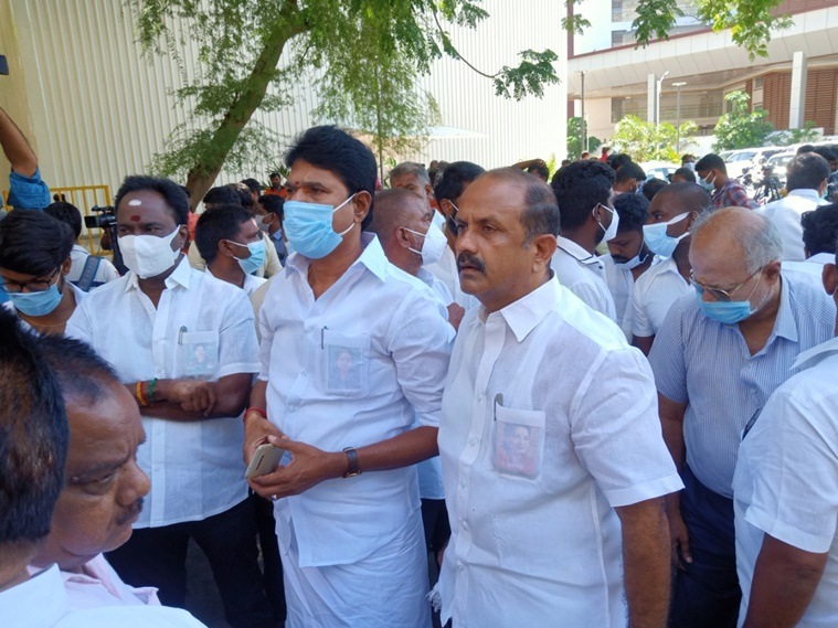 In Coimbatore, ten MLAs, AIADMK functionaries, and hundreds of supporters gathered in front of Velumani’s residence in Kuniyamuthur. The supporters removed barricades and engaged in a heated argument with the around 50 police personnel deployed there. The protesters staged a dharna and raised slogans against the DMK. The police have registered a case against MLAs, functionaries and cadres under various sections of IPC for unlawful assembly, Epidemic Disease Act, etc.