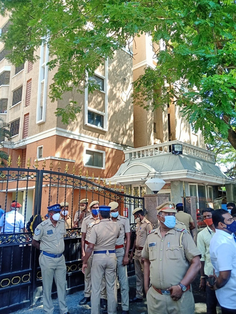 In Coimbatore, nine MLAs, AIADMK functionaries, and hundreds of supporters gathered in front of Velumani's residence in Kuniyamuthur.