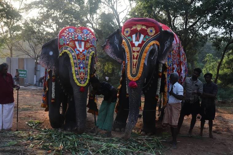 This year, 26 female elephants from various temples and maths in Tamil Nadu are taking part in the camp. (Express photo: Nithya Pandian)