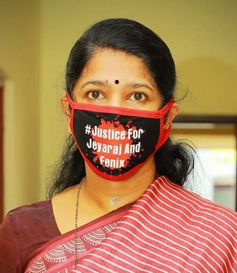 DMK MP Kanimozhi distributed face masks with '#JusticeForJeyarajAndFenix' printed on them to people in Thoothukudi district.