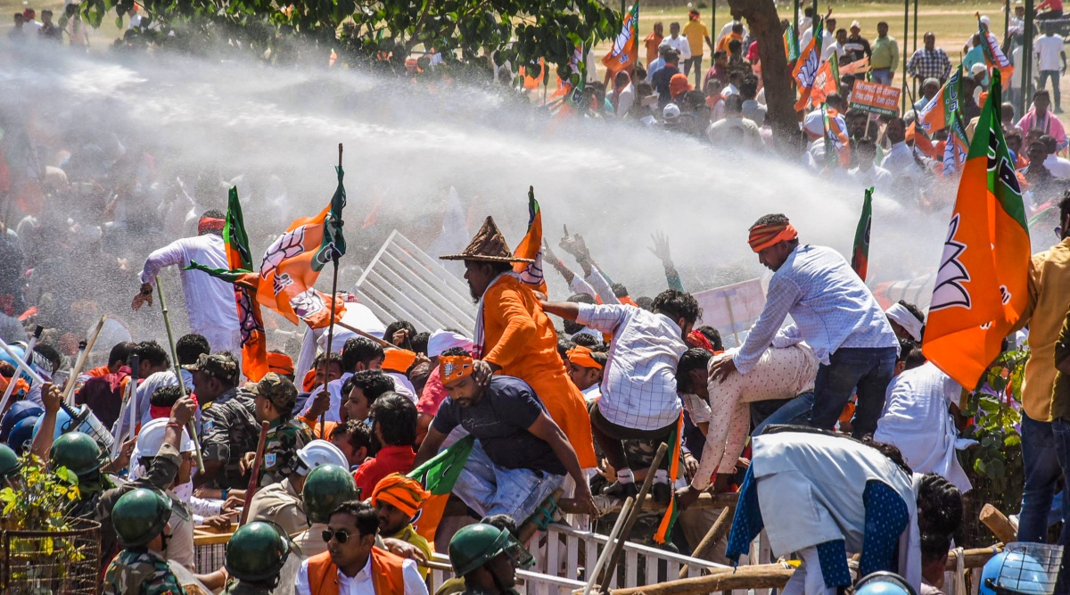 A group of BJP workers were lathi-charged in Ranchi on Tuesday when they were headed to the Jharkhand Secretariat as part of the ‘Jharkhand Sachivalaya Gherav’ protest against the JMM-Congress-RJD government’s “misrule”.