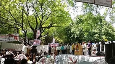 Kumar Vishwas, who had taken to the mike as events unfolded, first exhorted the man to come down. As the situation became increasingly serious, Vishwas then said that the man could meet Arvind Kejriwal if that’s what he wanted, but asked him not to do anything dangerous. As Vishwas realised that the man was not motionless hanging from the tree, an irate Vishwas said, “Police vaha khadi hai. Aap apna kaam kyu nahi kar rahe (Police is standing there. Why are you not doing your work?).”