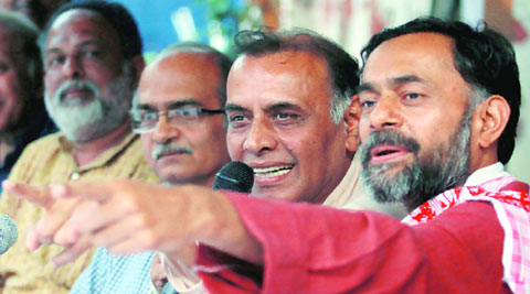 (From right) AAP leaders Yogendra Yadav, Anand Kumar and Prashant Bhushan on Wednesday.