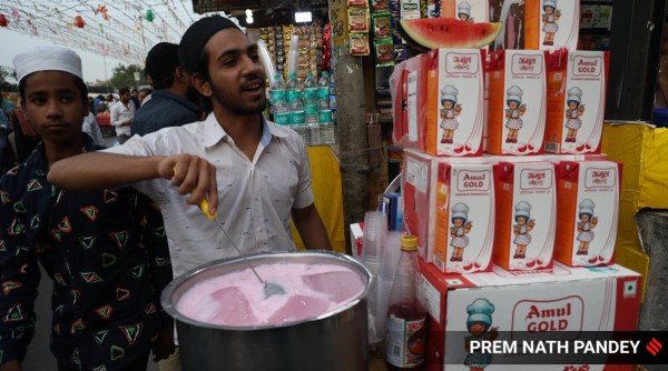 “Mohabbat ab sharbat ban gayi hai, nafrat ko bhulao (Love has now dissolved into a sherbet, let’s forget hatred),” says Asif Qureshi, pouring milkshake into a tumbler and offering it to everybody making their way to Jama Masjid to break their Ramzan fast. With a smile on his face, he churns the milk with the juiciest bits of watermelon, dunking in blocks of ice before the sweltering heat can melt them. The refreshing drink washes away every anxiety under the dulcet glow of the masjid dome as the muezzin waits to strike the gong for iftar.